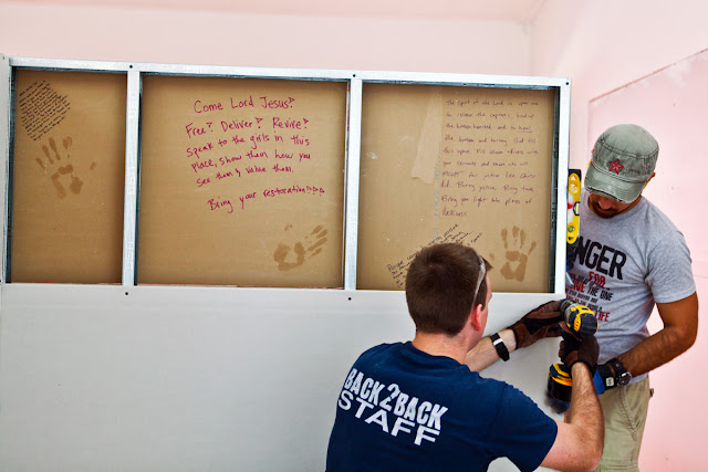 So we were working on finishing up a construction project that began before we came as you will see from the picture. We have been building walls within each of the four rooms to separate offices so that each girl will have privacy with a counselor to begin the healing process.